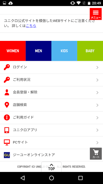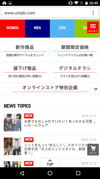 ・「Yahoo! JAPAN」「ユニクロ」のメニュー位置は左上