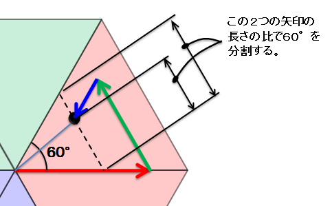 考え方A.長さの比率で角度60°を分割 / R≧G≧B