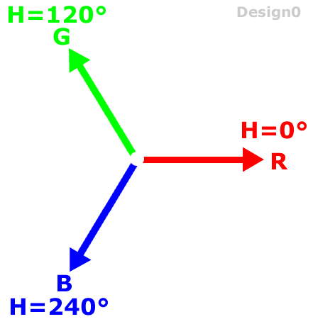 色相 H = 60 × ((R - G) ÷ (MAX - MIN)) +240°