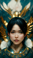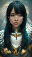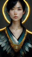 --w 1080 --h 1920 Gorgeous Japanese female young aasimar paladin, angel wings, pale skin, Black hair, turquoise eyes, golden halo, wearing a decorated silver breastplate, heavy mace in hand, ethereal, symmetrical facial features, highly ornate details, D&D, 8k, full hd render, trending on artstation, hyperrealistic, octane render, fine art portrait, highly ornate details